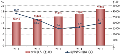 1月19日,國家統(tǒng)計局發(fā)布數(shù)據(jù),2015年全國餐飲收入實現(xiàn)32310億元,同比增長11.7%,增速比上年提升2.0個百分點;限上餐飲收入8667億元,同比增長7.0%,高于上年4.8個百分點。