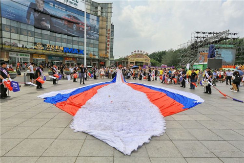 領導共同切五米長的大蛋糕,祝西餐節(jié)圓滿開幕。