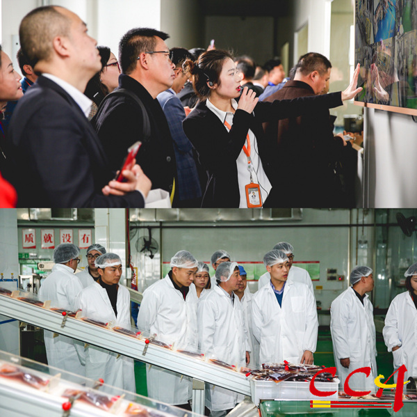 與會代表考察楊國,F(xiàn)代工廠、麻辣空間食品基地